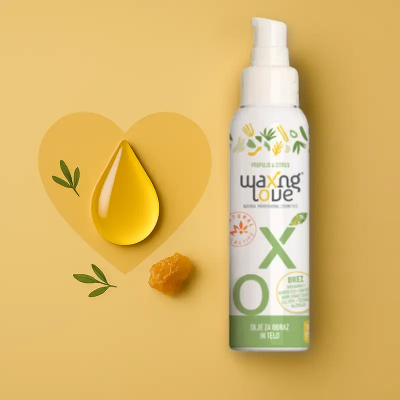 Waxing Love z naravnim propolisom in citrusom pomirja, vlaži ter ščiti kožo pred in po depilaciji. Hkrati je popolno za vsakodnevno nego. Koža ostane mehka, čista in sijoča – brez draženja, suhosti in vraščenih dlačic le sijoča in nežna.