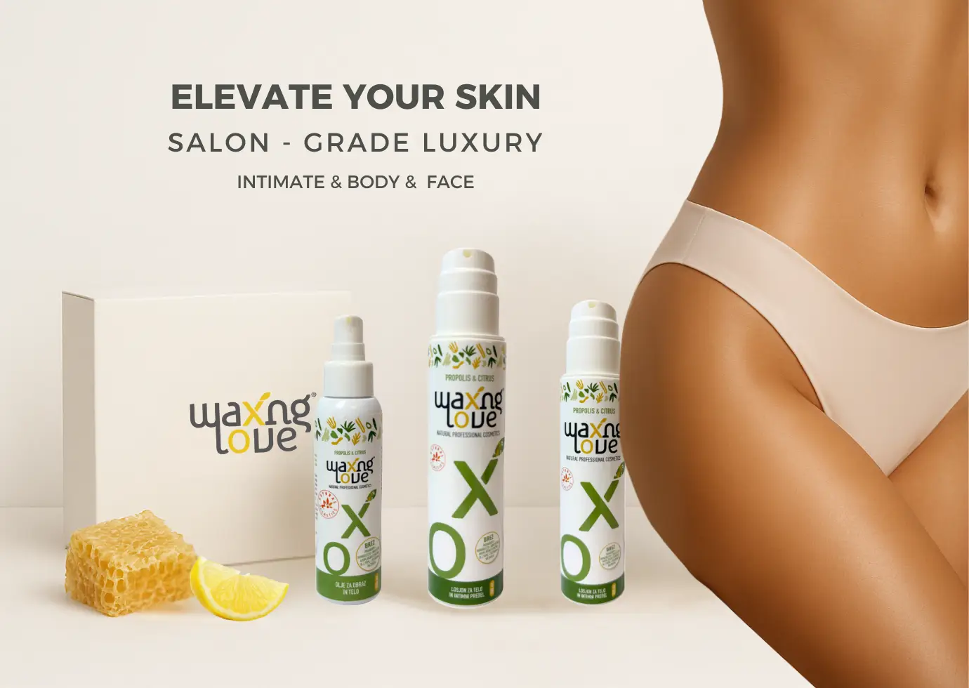 Linija Citrus & Propolis, razvita v salonu z ljubeznijo do kože – za nego pred in po depilaciji ter vsakodnevno svežino.
