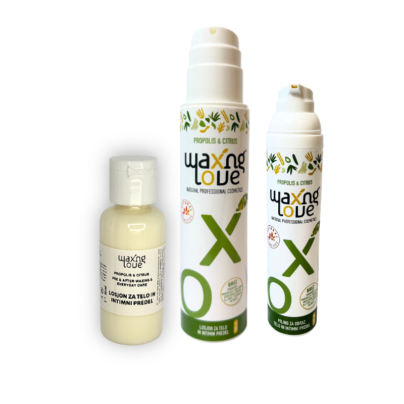 Naravni intimni losjon 200 ml + naravni piling 100 ml + DARILO mini losjon 30 ml. Naravna kozmetika za nego pred in po depilaciji ali britju ter za vsakodnevno nego kože brez vraščenih dlak in iritacij
